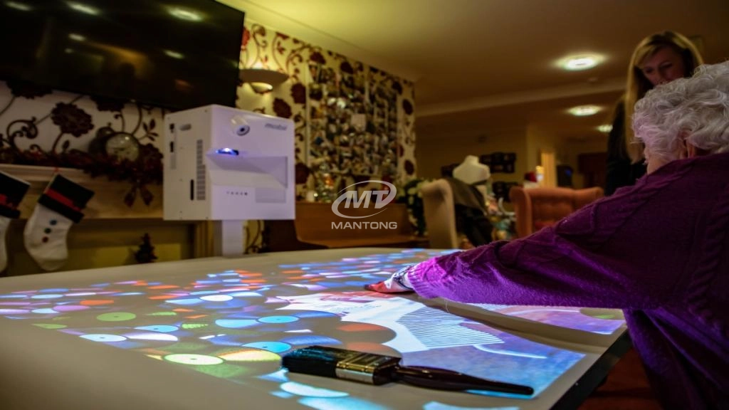 Explore top uses of interactive projection mapping in elderly care facilities with Mantong. Discover engaging therapy, social activities, wayfinding and safety solutions that enhance well-being and staff efficiency.
