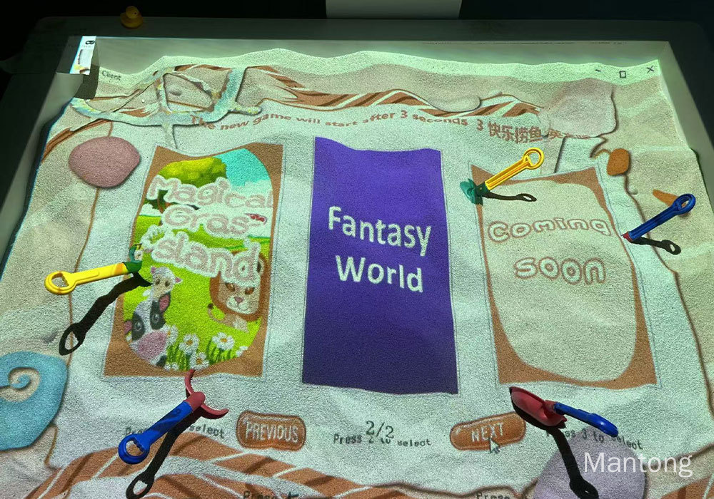 The Mantong Interactive Sandbox Game turns ordinary sand into a living, responsive landscape. Using high-quality projection, depth sensors and our custom software, the system maps terrain in real time and projects dynamic visuals—water flows, topographic colors, and animated creatures—right onto the sand. It’s intuitive, safe and designed for continuous public use.